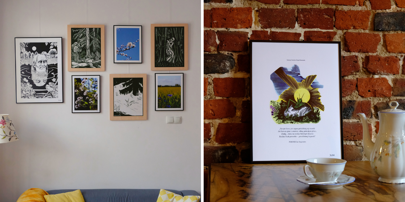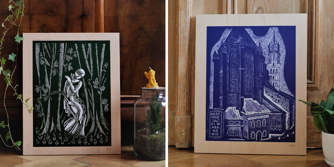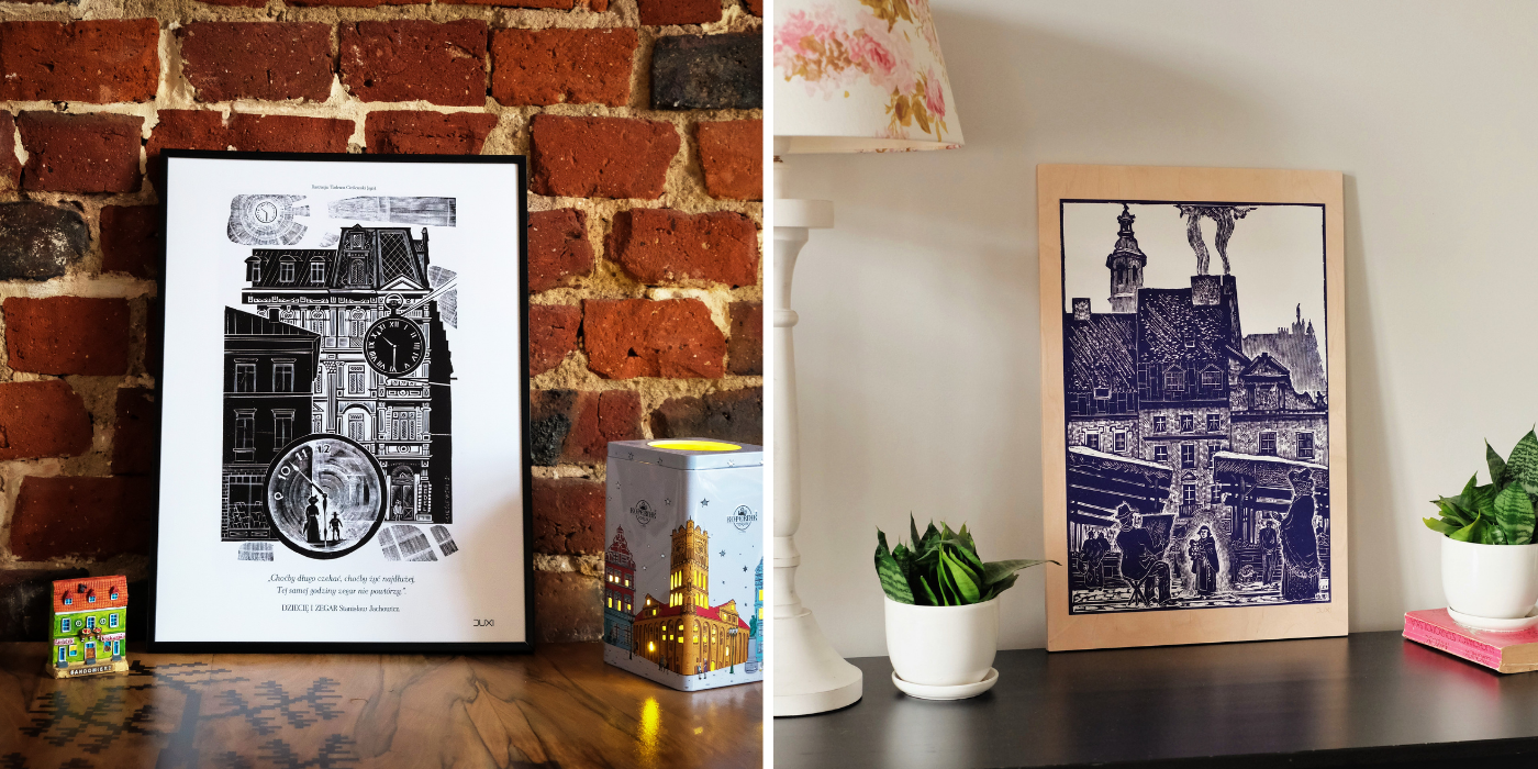 Plakaty, grafiki na sklejce lub szkatułki z motywami polskich drzeworytów z naturą, czy architekturą doskonale sprawdzą się w większości wnętrz. Z wnętrzami rustykalnymi i skandynawskimi będą idealnie się komponować dekoracje z roślinnymi ornamentami. Za to te z motywami architektonicznymi, świetnie sprawdzą się we wnętrzu nowoczesnym, industrialnym czy minimalistycznym.